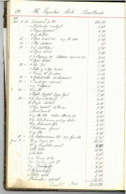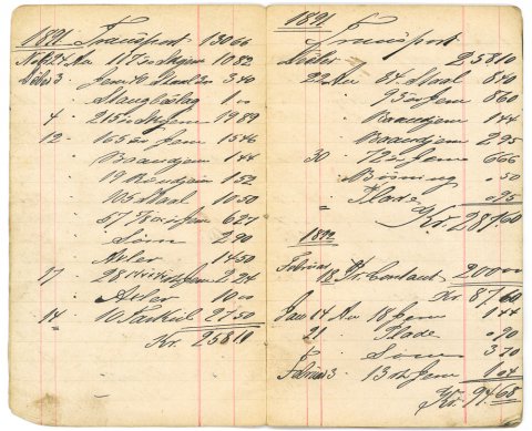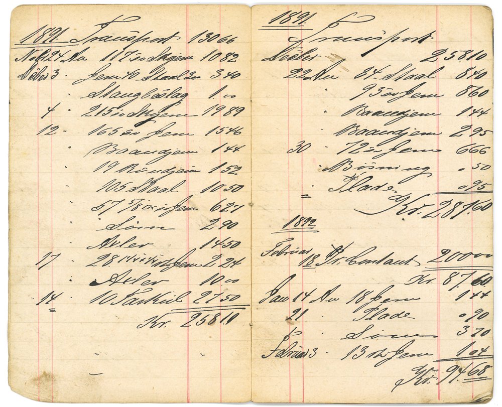 Et par sider i regnskabsbogen fra etableringsåret 1891